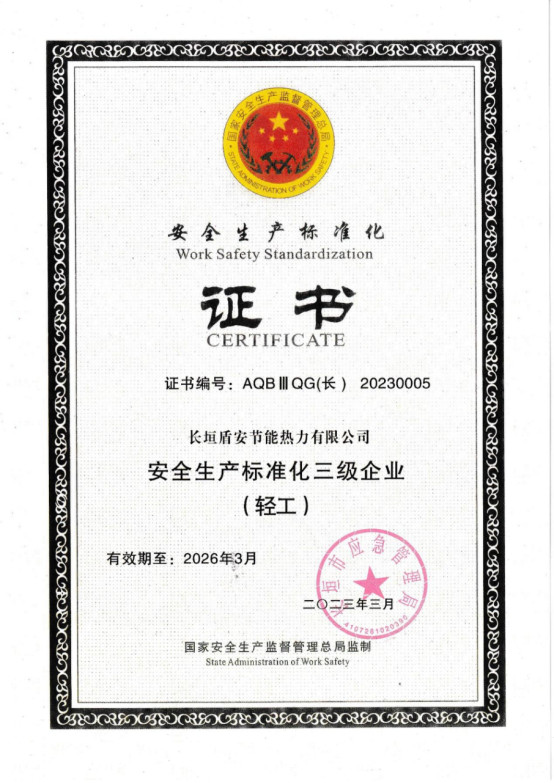 150大會戰(zhàn)|長垣盾安節(jié)能熱力公司成功取得國家級安全生產(chǎn)標(biāo)準(zhǔn)化三級證書