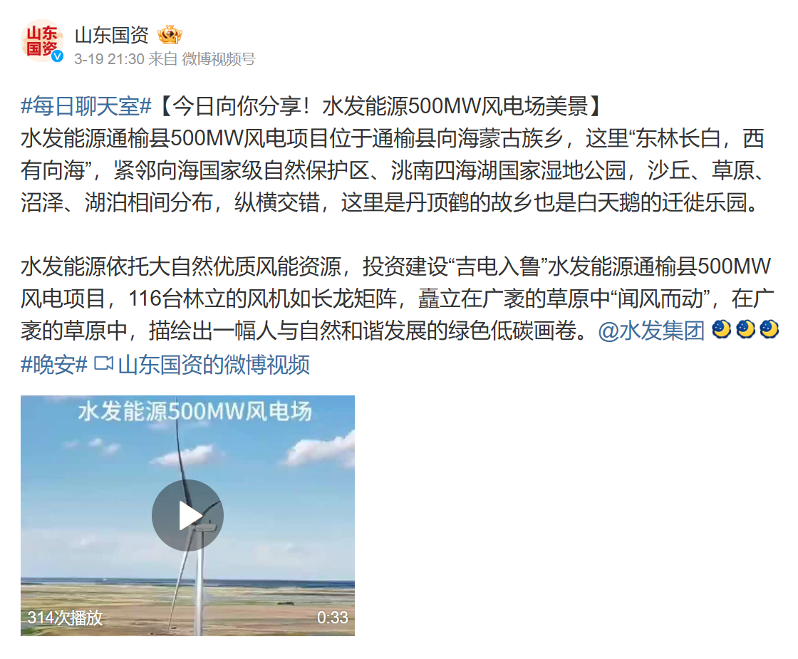 【山東國資】今日向你分享!水發能源500MW風電場美景